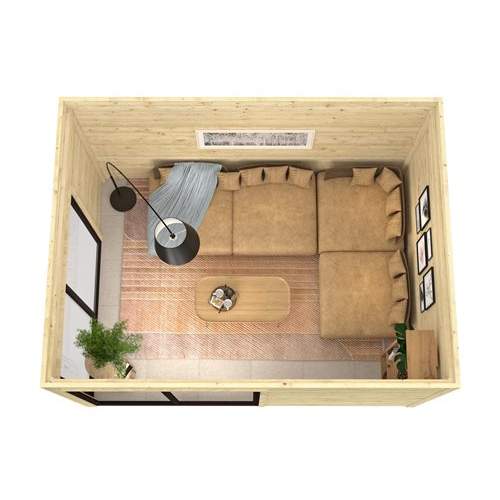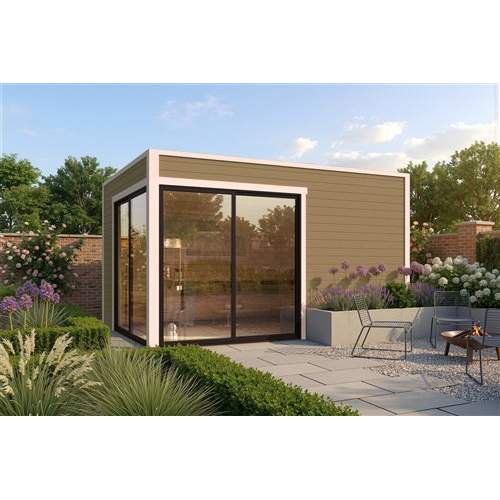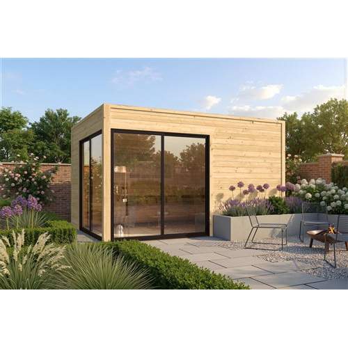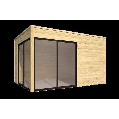 Blokhut Rico 400 x 300 cm, wordt geleverd inclusief twee aluminium/glazen schuifwanden