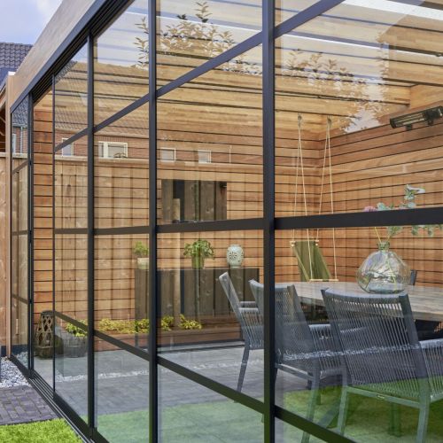 Glazen schuifwand steel-look set