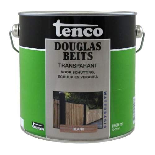 Tenco Douglasbeits transparant is een watergedragen duurzame buitenbeits op acrylbasis. Tenco Douglasbeits is reuk arm en minder belastend voor het milieu. Tenco Douglasbeits accentueert de houtnerf en het beschermt hout tegen weersinvloeden, het is gemakkelijk aan te brengen en sneldrogend. Verwerking mag niet in de volle zon of beneden de 10 °C. Tenco Douglasbeits biedt een prima bescherming voor douglas - en larikshout zoals; een tuinhuis, hekken, schuttingen, blokhutten en palissaden.
