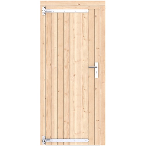 Vuren dichte enkele deur LD onbehandeld 90 x 201 cm verzinkte hengen RVS beslag 1045632