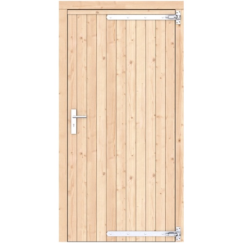 Vuren dichte enkele deur RD groen geïmpregneerd 108 x 209 cm verzinkte hengen RVS beslag 1073337