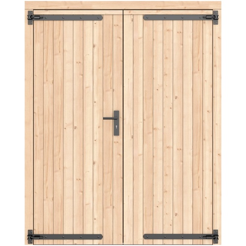 Vuren dubbele dichte deur groen geïmpregneerd 168 x 209 cm zwart beslag 1073340