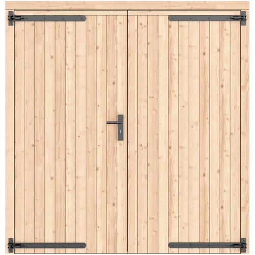 Vuren dubbele dichte deur groen geïmpregneerd 201 x 209 cm zwart beslag 1073342