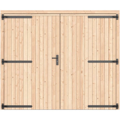 Vuren dubbele dichte deur groen geïmpregneerd 250 x 209 cm zwart beslag 1073344